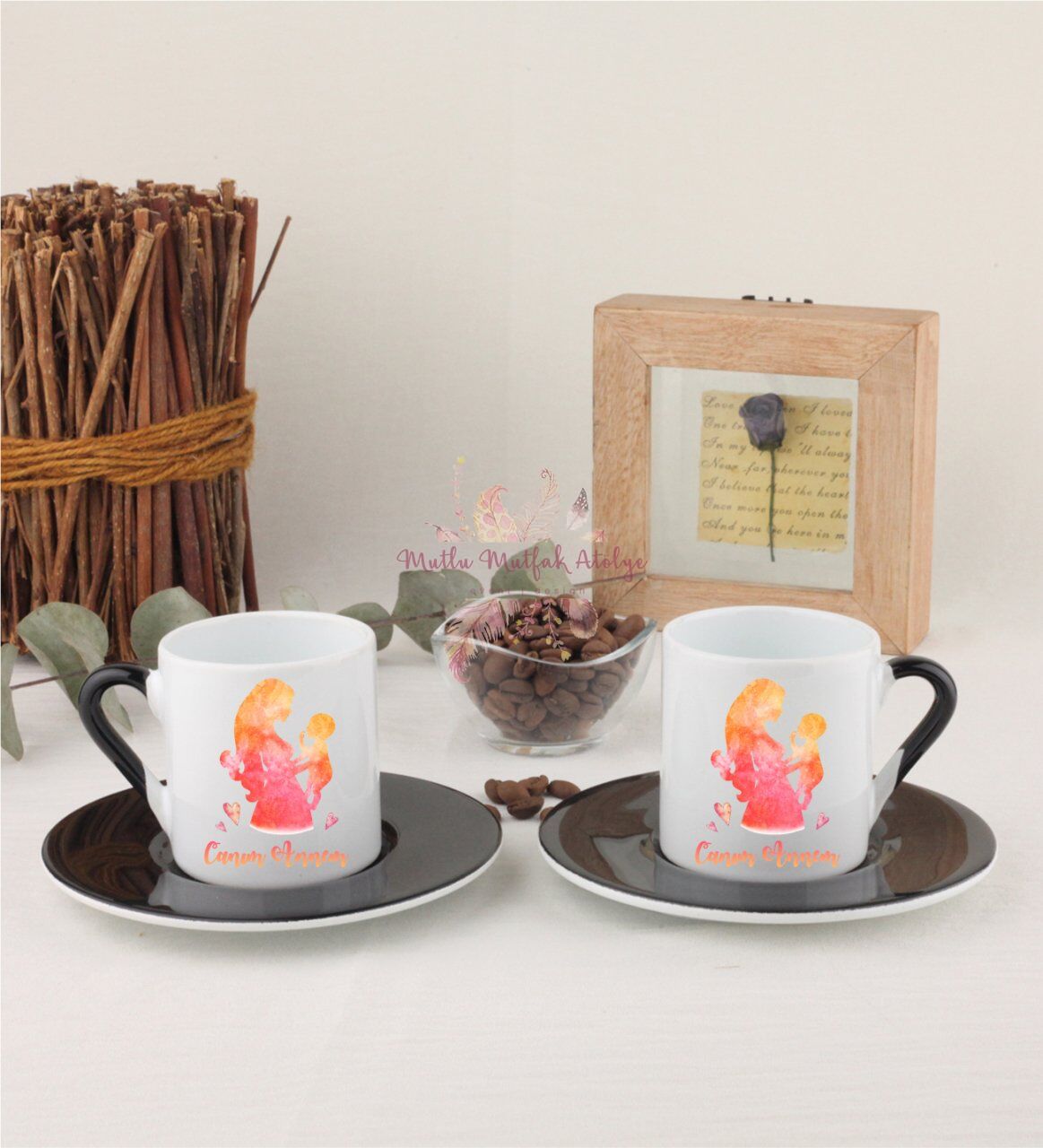 Anneler Günü Canım Annem İkili Siyahlı Türk Kahvesi Fincanı