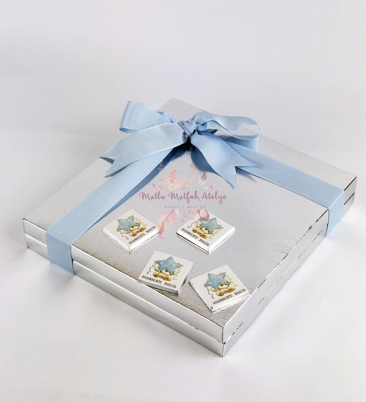 isme özel bebek çikolatası yaptırmak isteyen herkese Mutlu Mutfak Atölye web sitesini tavsiye ederim. Ayıcık Konseptli 32'li Kutu Çikolata ürünümüz özenle paketlenmiş ve çikolataları lezzetliydi.
