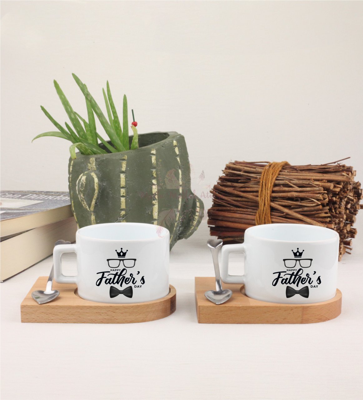 Babalar Günü İkili Ahşap Altlıklı Fincan