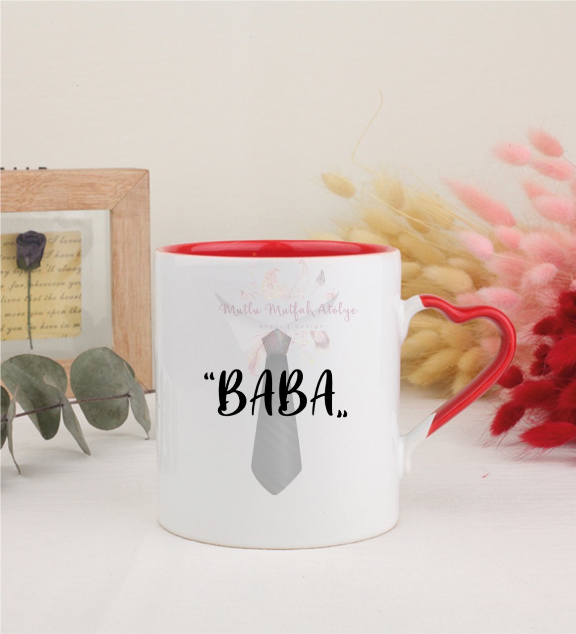 Babalar Günü Kırmızı Kalpli Kupa Bardak