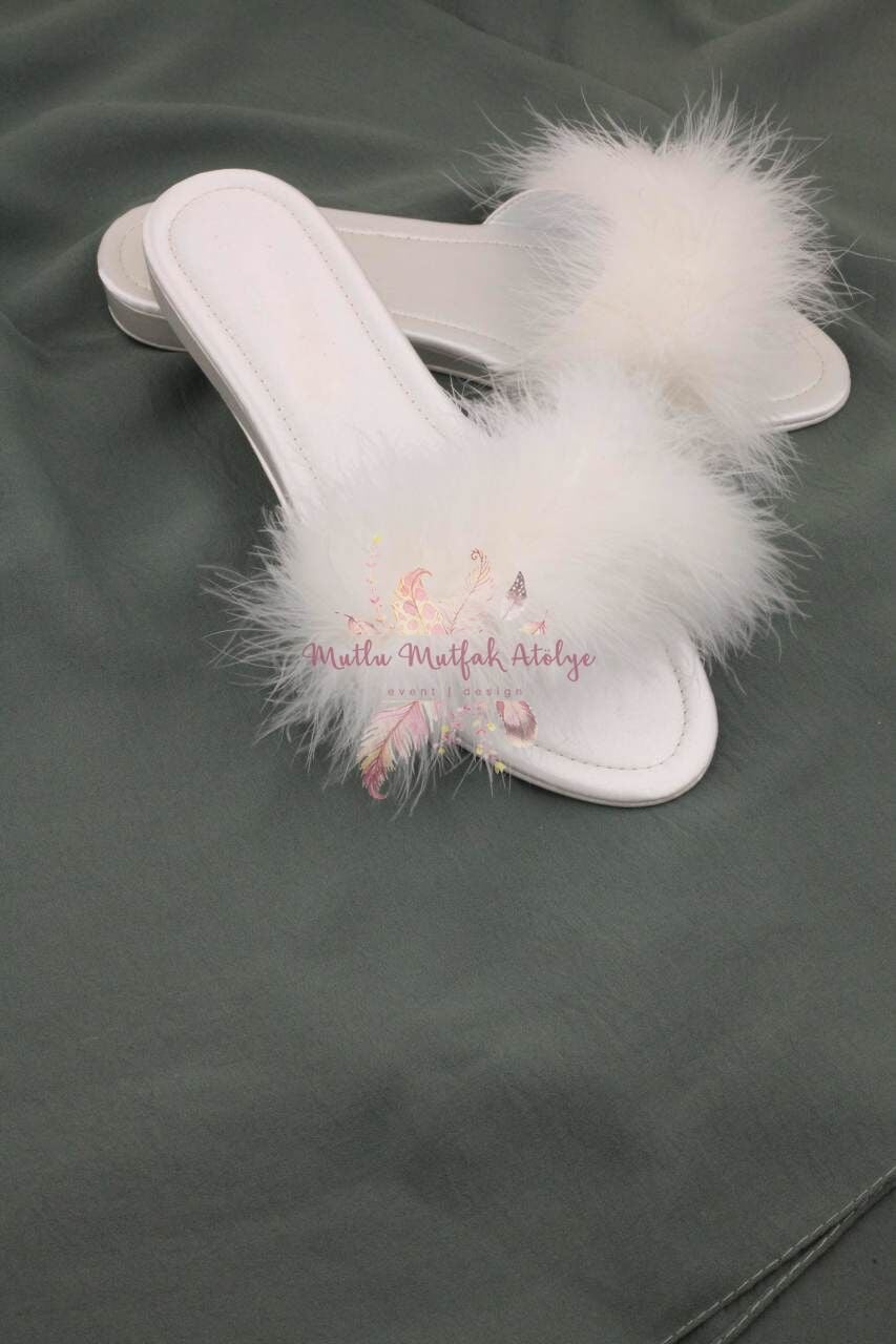 Beyaz Tüylü Gelin Terliği siparişimiz hemen geldi, ürün kaliteli, tavsiye ederiz.
