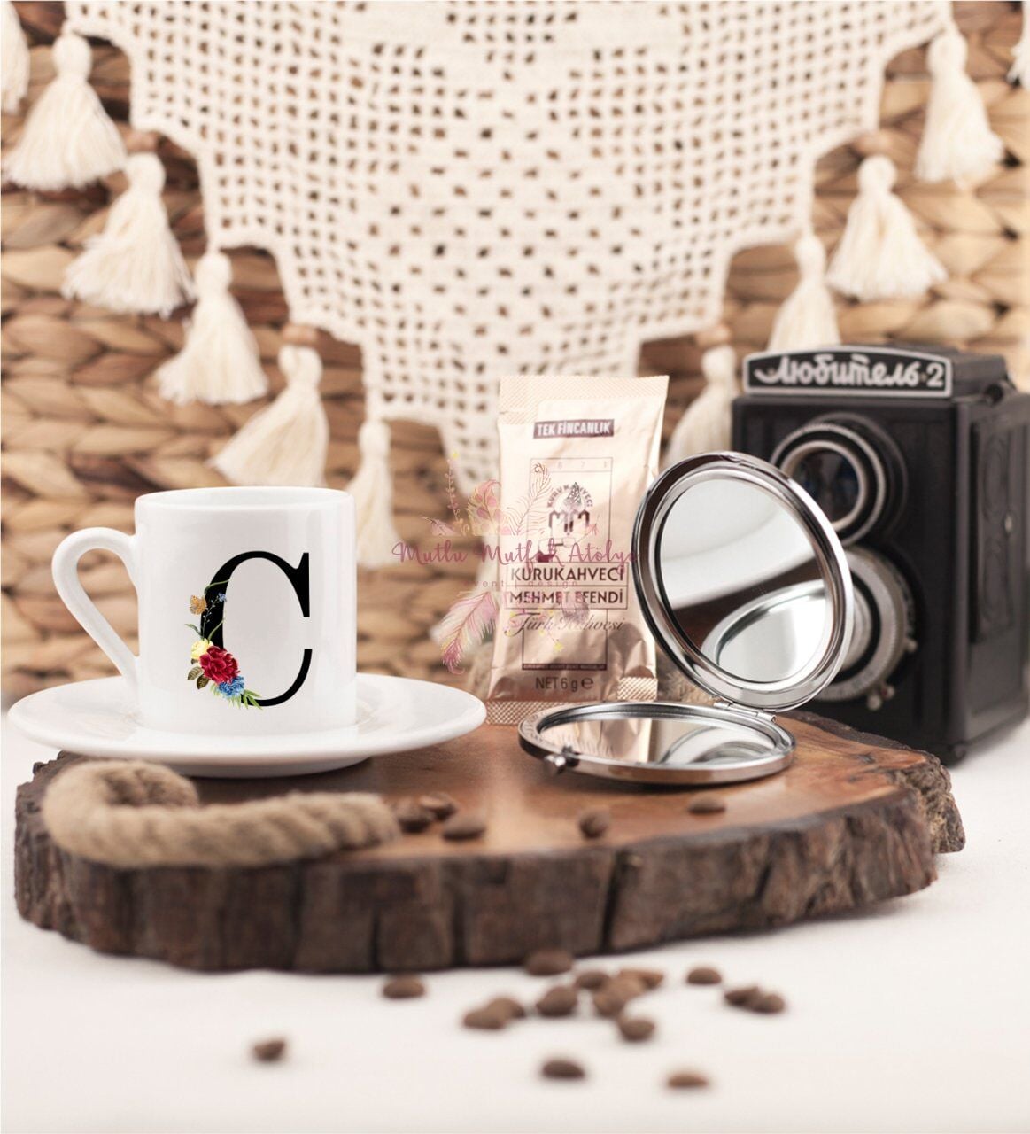 C Harfi Çiçek DesenliAynalı Kahve Fincanı