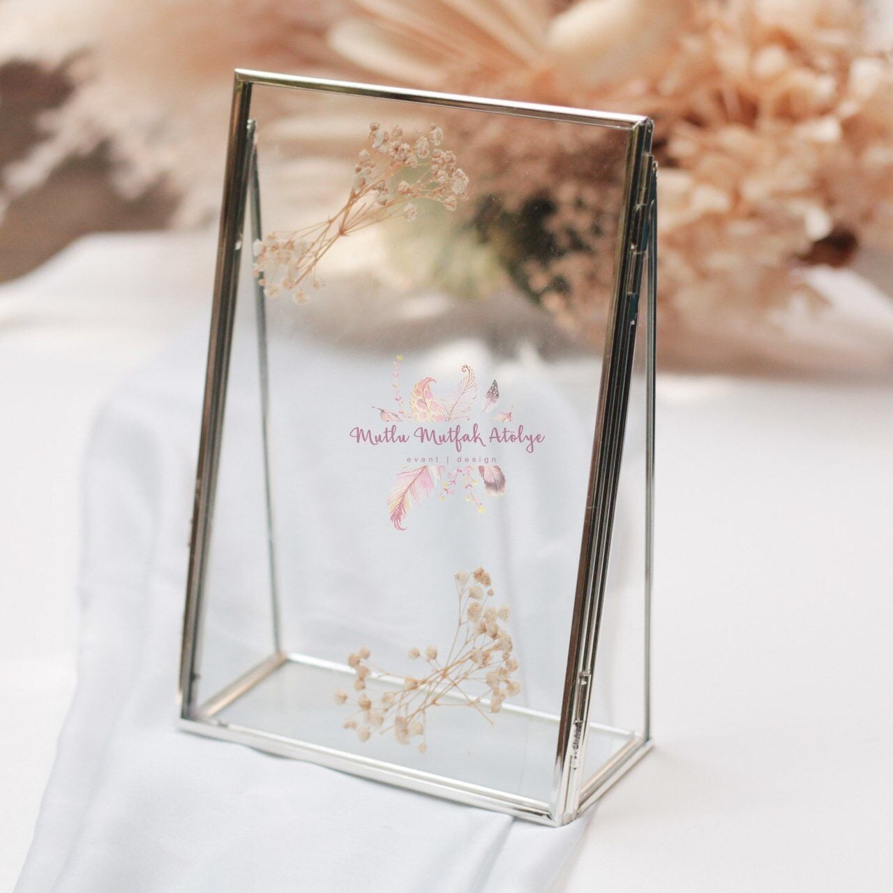 Çerçeveli Çiçekli Cam Masaüstü İsimlik