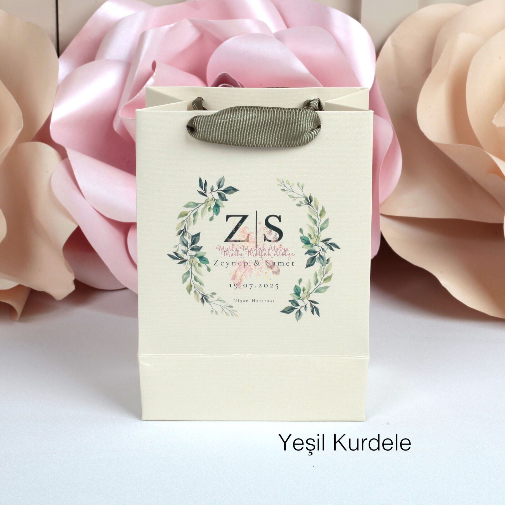 Çiçek Desenli Düğün Nişan Hediyeliği Baskılı Çanta