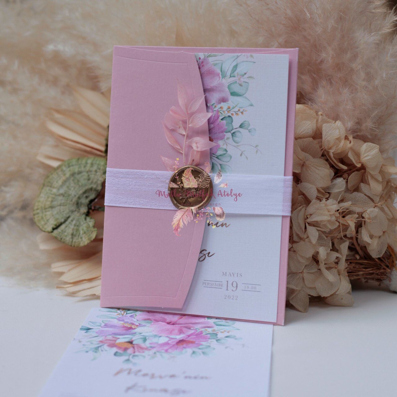 Çiçek Konseptli Mühürlü Davetiye (50 Ad.)