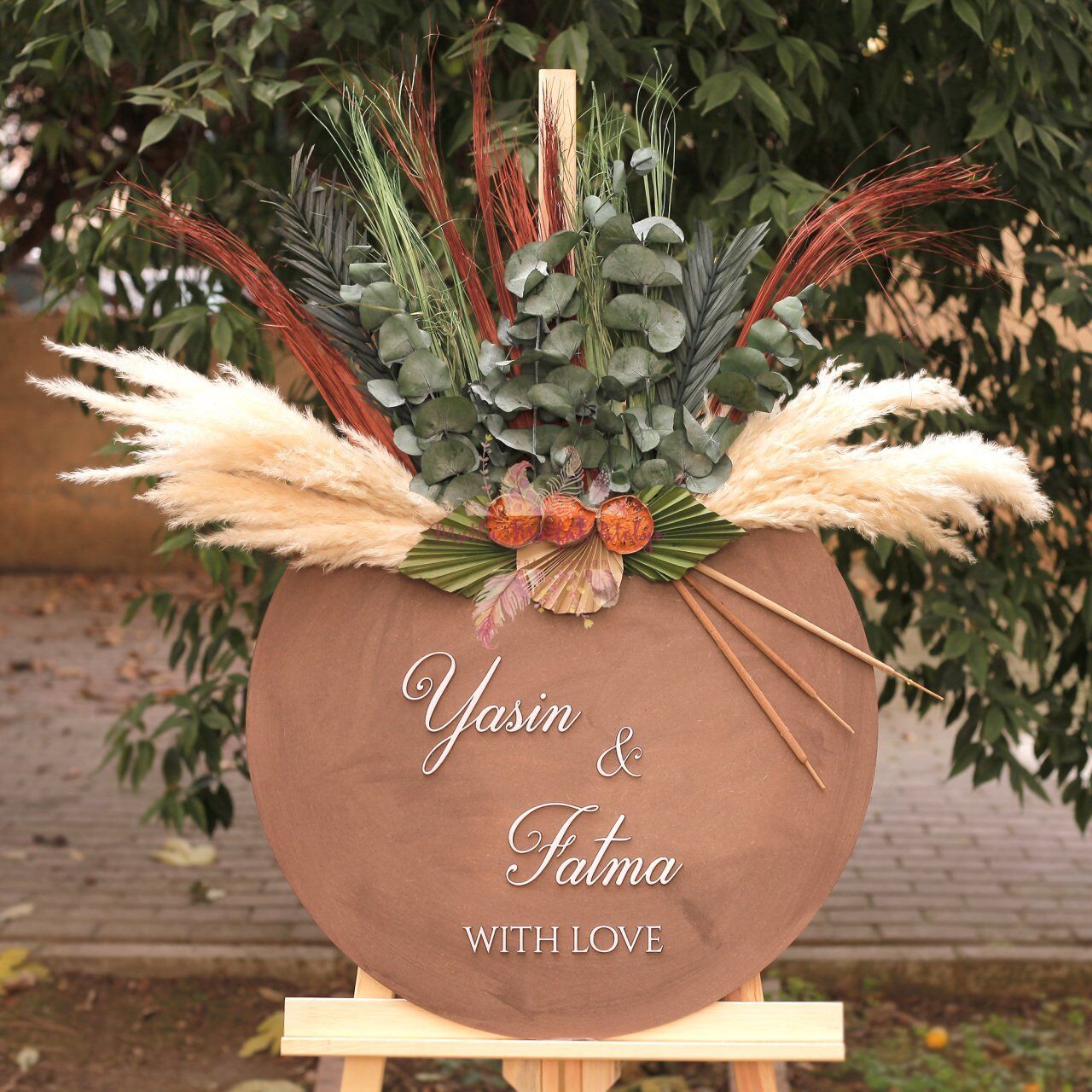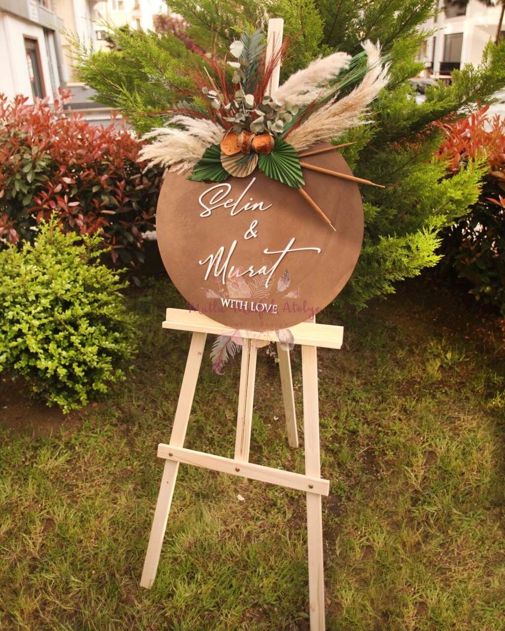 Çiçekli Ahşap Karşılama Panosu
