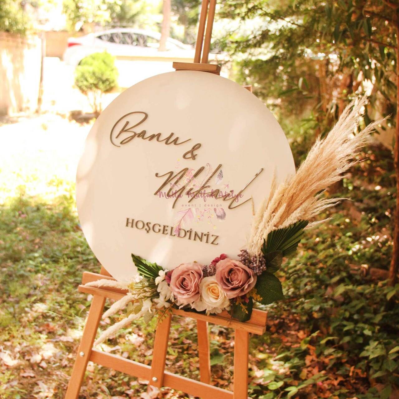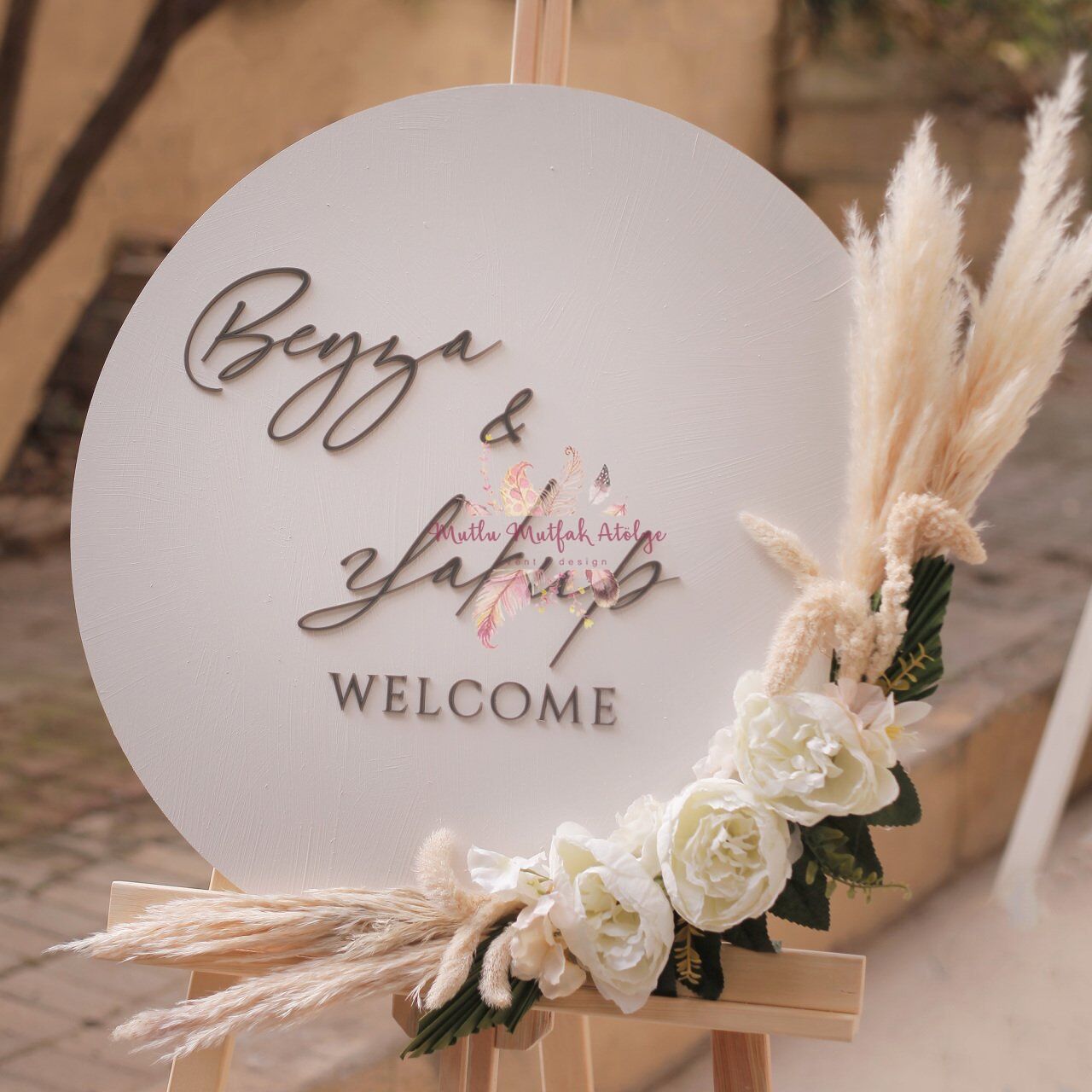 Çiçekli Beyaz Karşılama Panosu