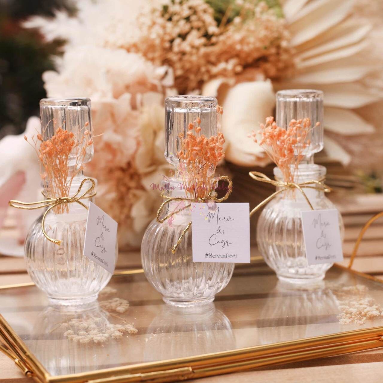 Çizgili Cam Şişe Eyüp Sabri Tuncer Kolonya Nikah - Nişan Hediyeliği
