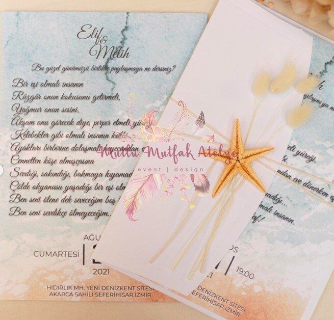 Mutlu Mutfak Atölye Deniz Yıldızı Konseptli Tasarım Davetiye