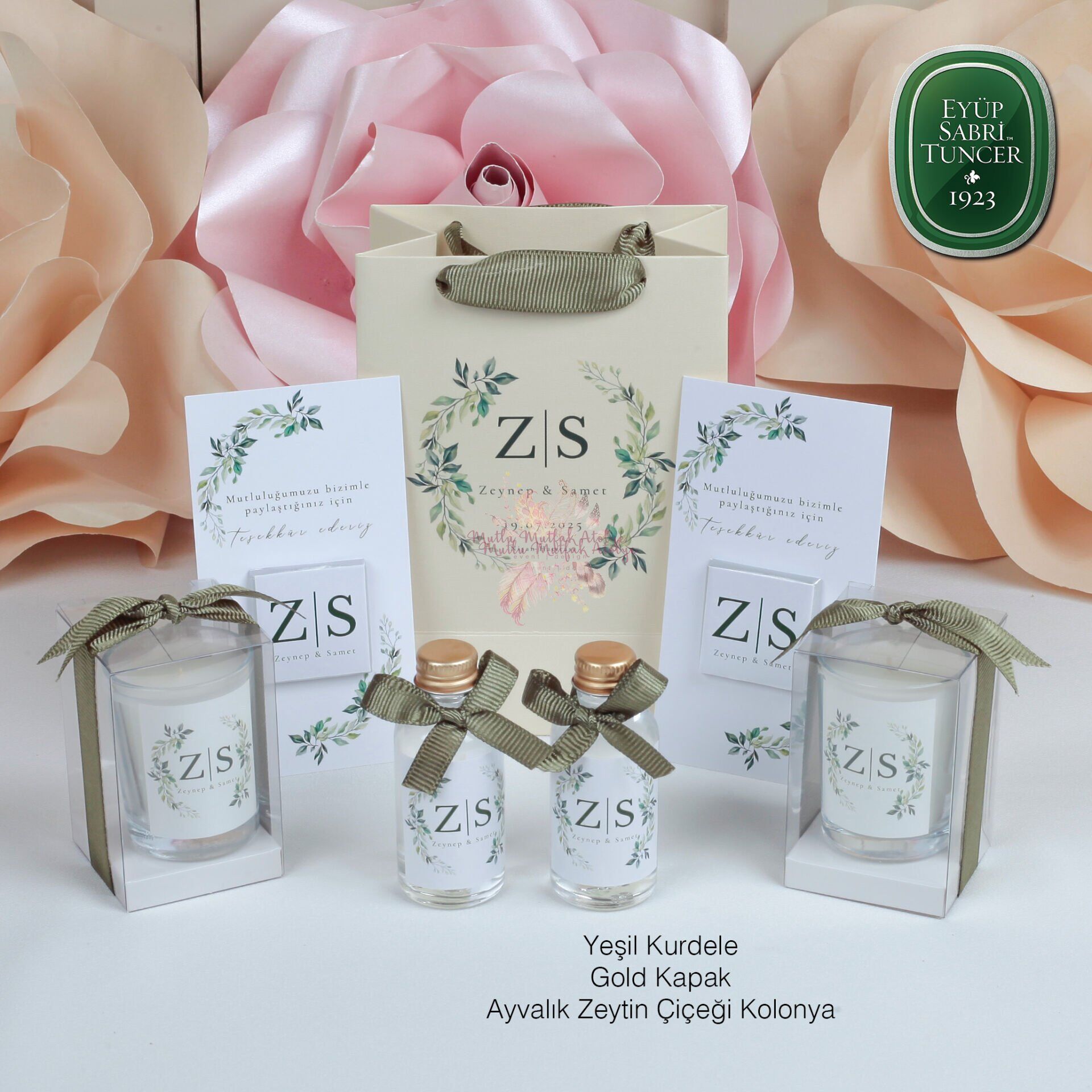 Düğün Nişan Hediyeliği Çikolata, Eyüp Sabri Tuncer Kolonya Vanilya Kokulu Mum ve Baskılı Karton Çanta Seti