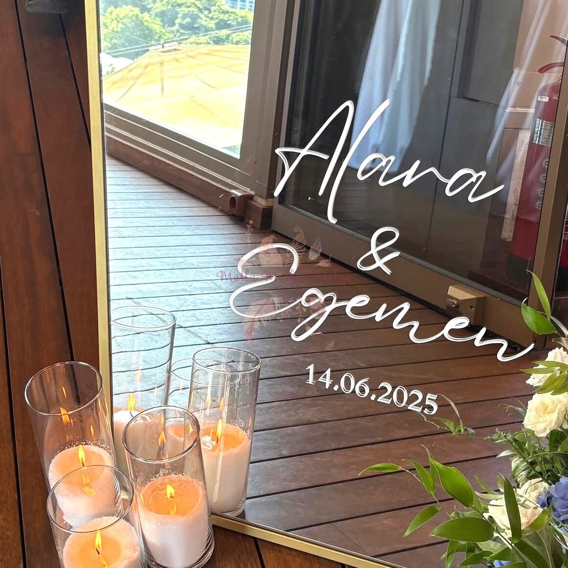 Düğün Nişan Karşılama Panosu Ayna Yazısı - Kişiye Özel İsimli Folyo Sticker