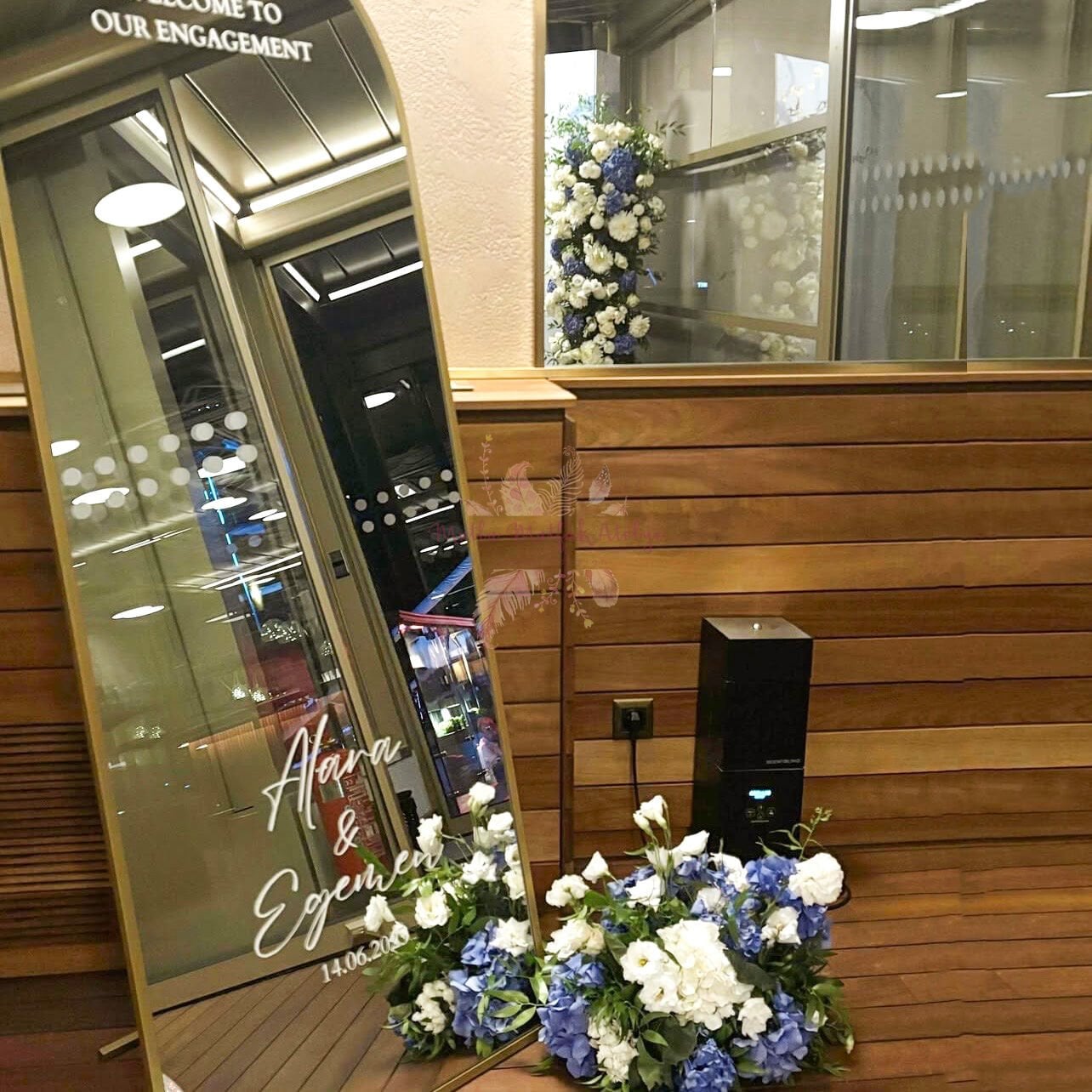 Kendi boy aynanızı profesyonel bir karşılama panosuna dönüştürmeniz için hazırladığımız kişiye özel ayna yazısı, yüksek kaliteli folyo kesim teknolojisiyle üretilmektedir. 70x180 cm ve benzeri tüm aynalarla uyumlu olan bu folyo sticker, davetlerinizin girişinde misafirlerinizi etkileyici bir görselle karşılamanızı sağlar.