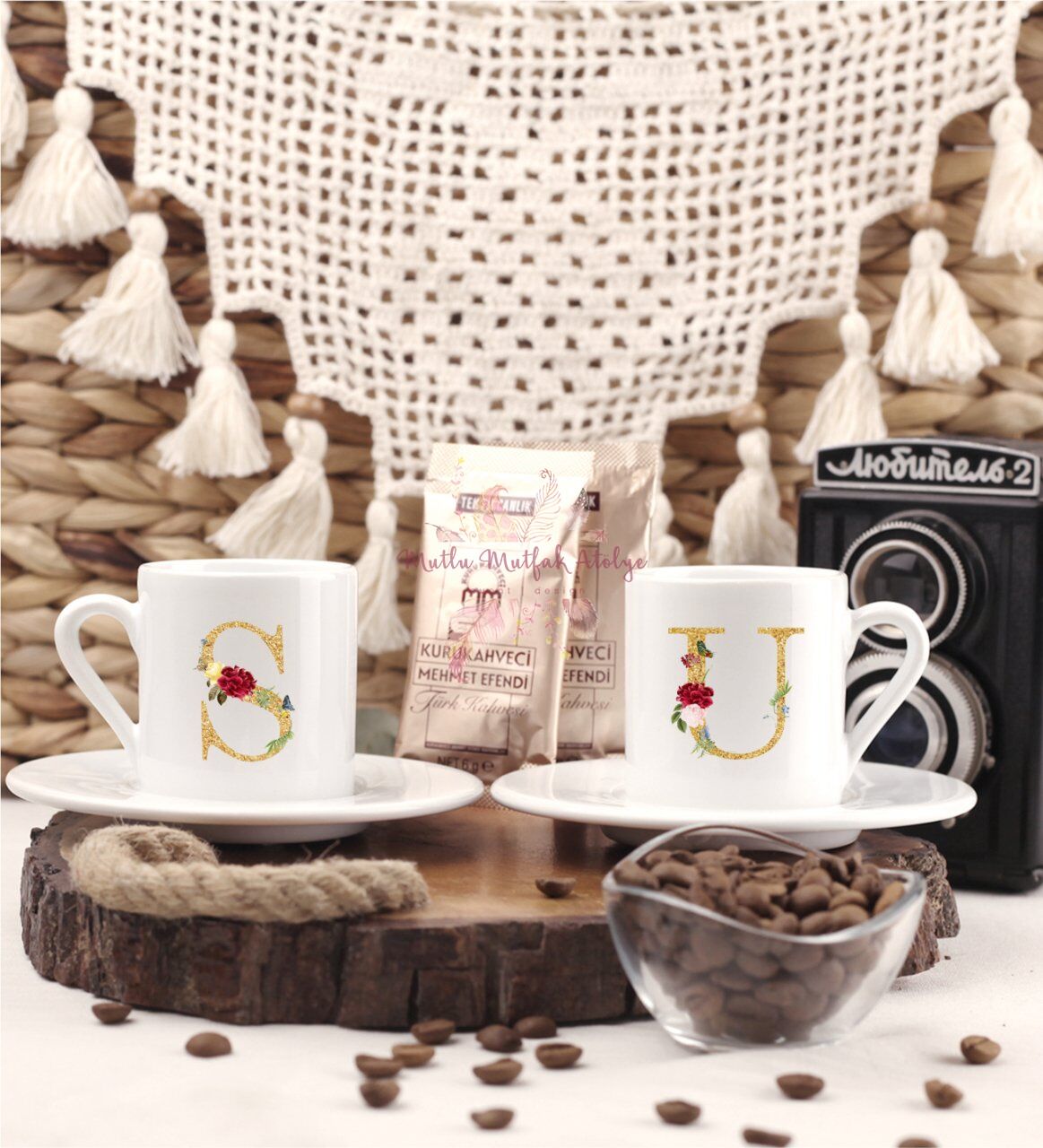 Gold Harfli İkili Türk Kahvesi Fincanı