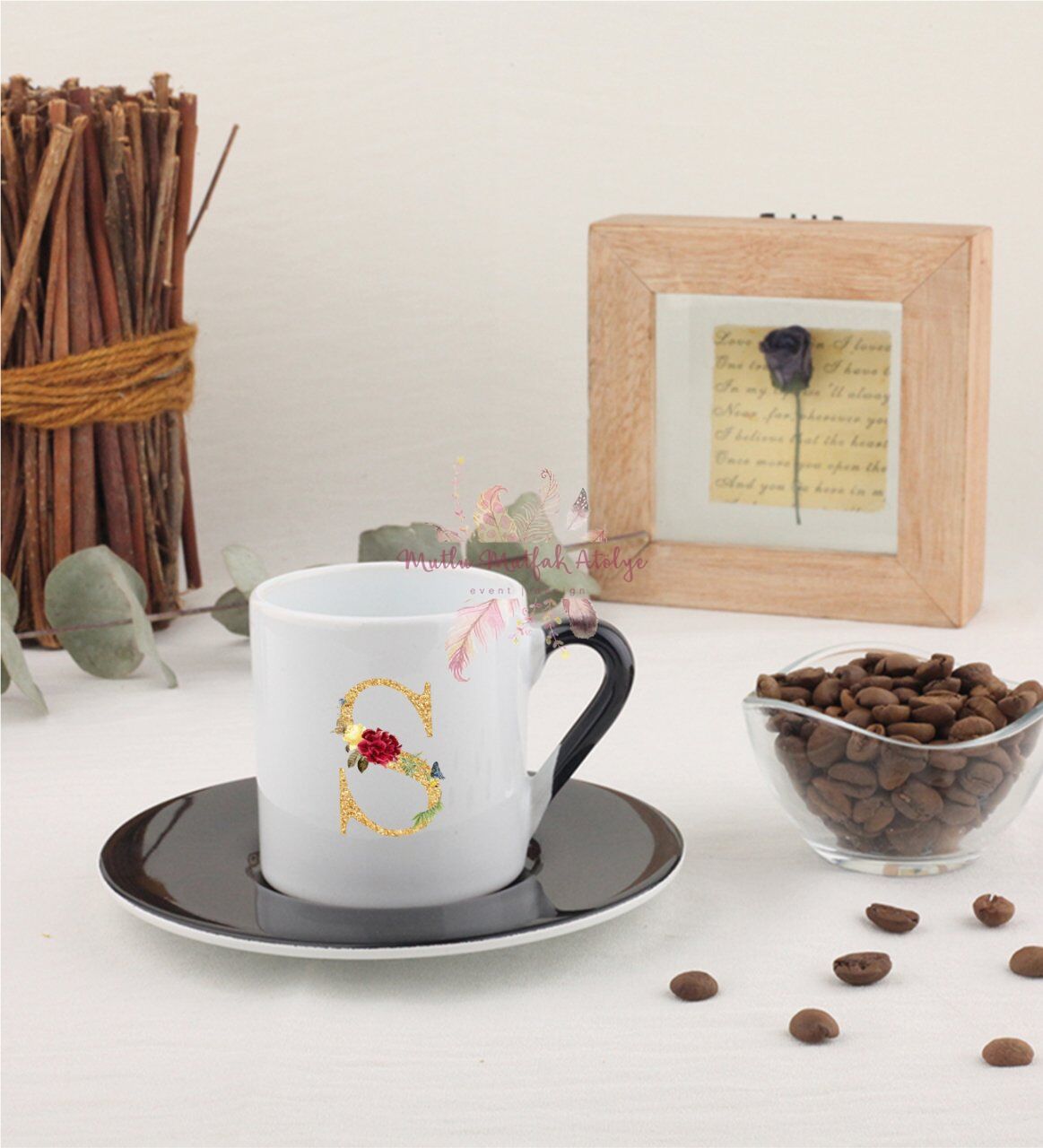 Gold Harfli Siyah Türk Kahvesi Fincanı