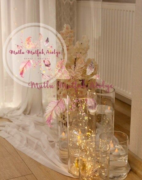 Sütun üzeri vazo ve çiçekleriYüzen mum vazo ve mumlar