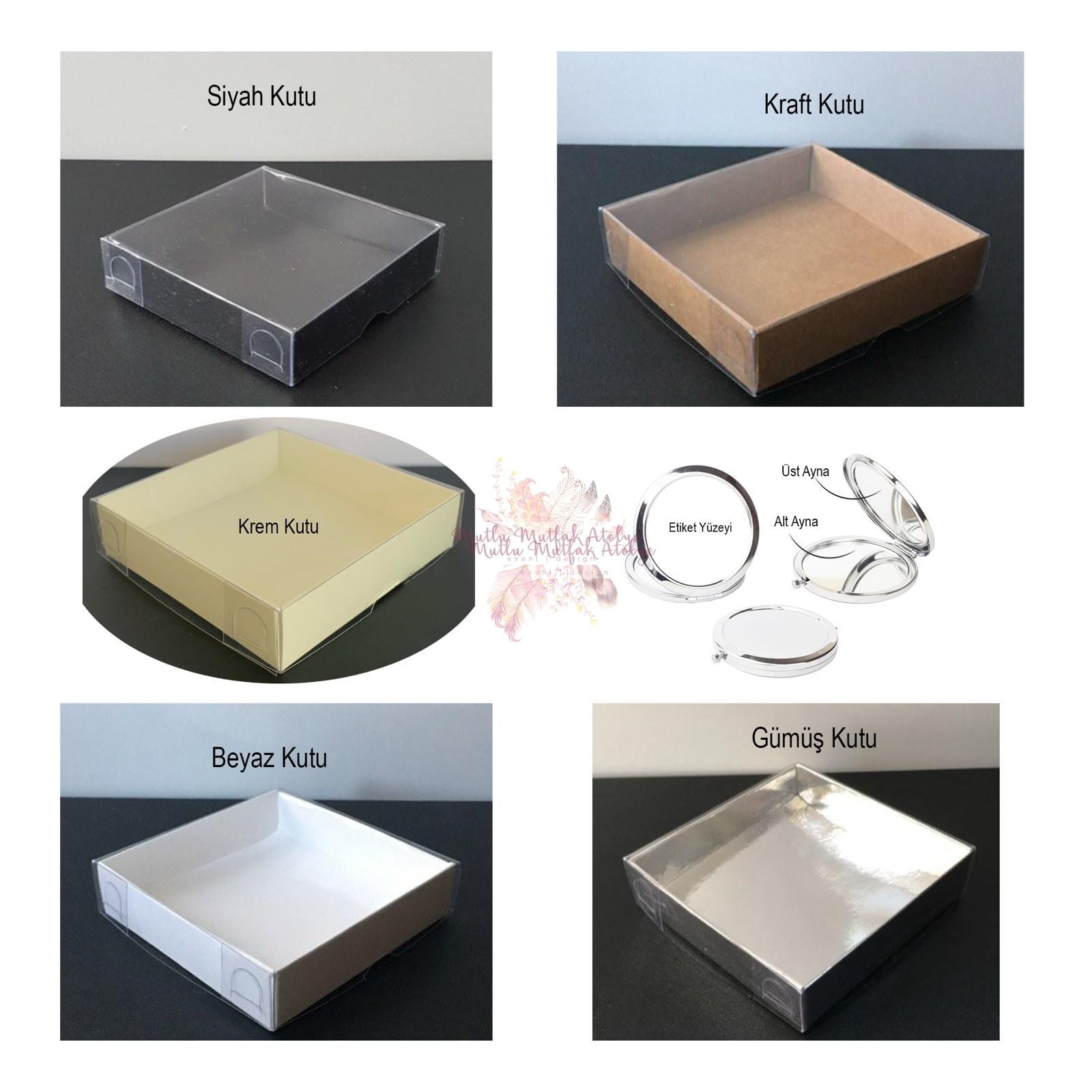 - Aynanın dış süslemesinde kutu ve kurdele bulunmaktadır.