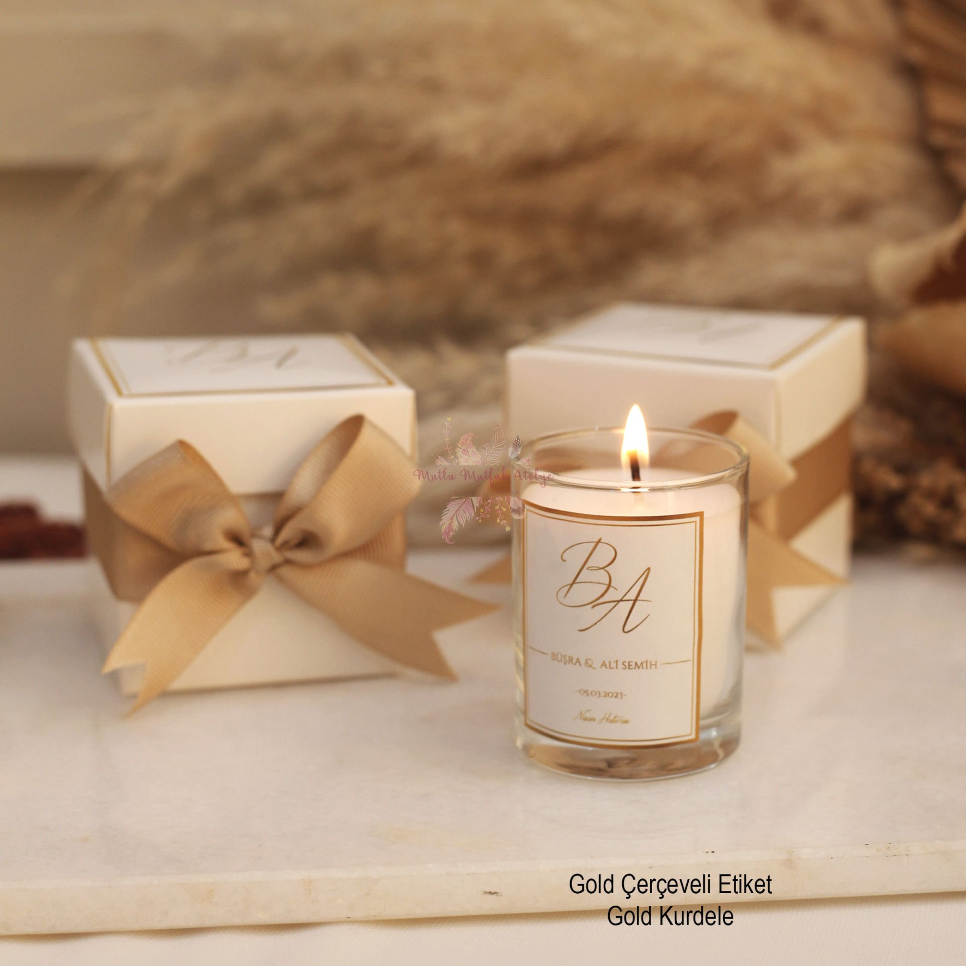 Hediyelik Kurdeleli Kutulu Mum