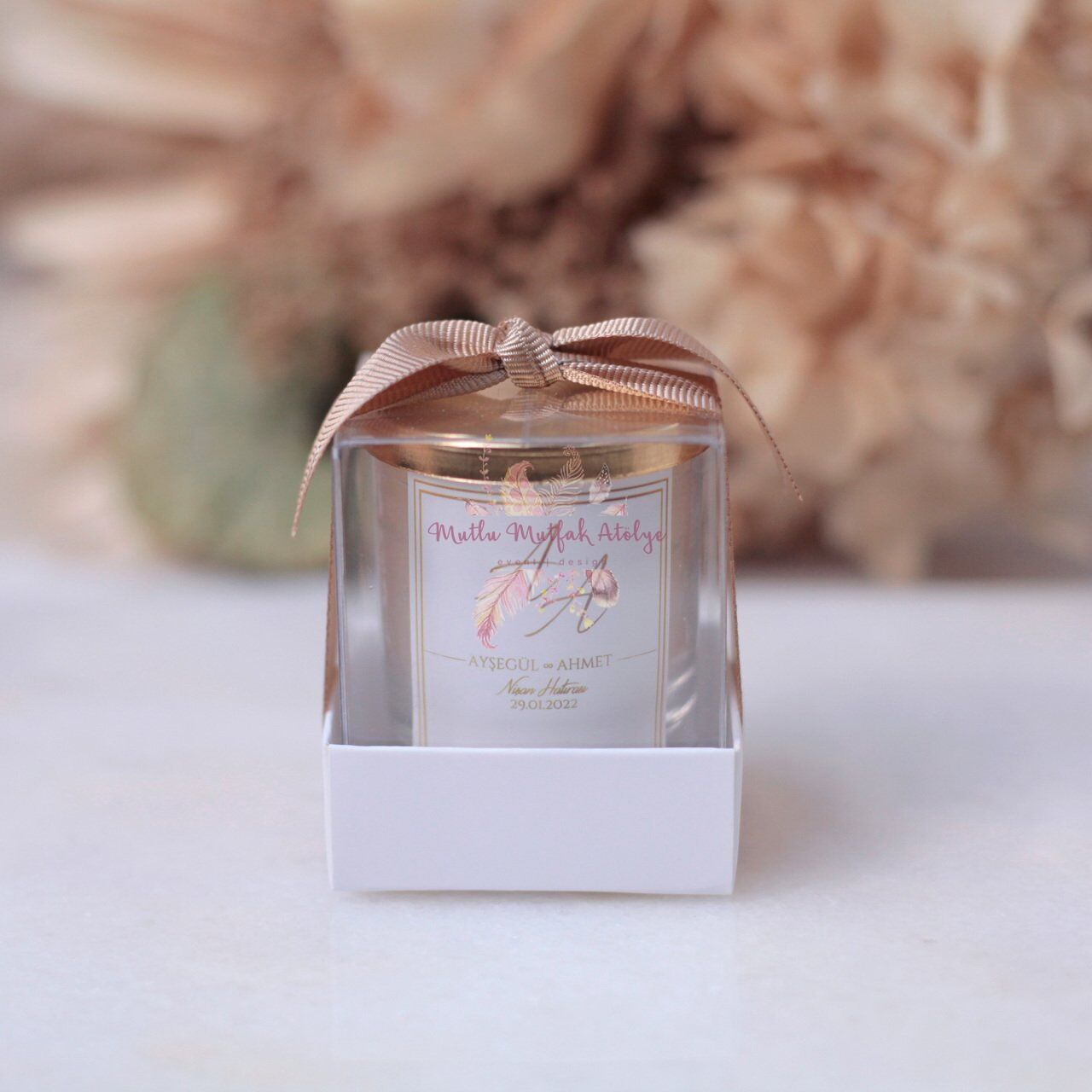 Hediyelik Süslenmiş Kutulu Kapaklı Kokulu Mum