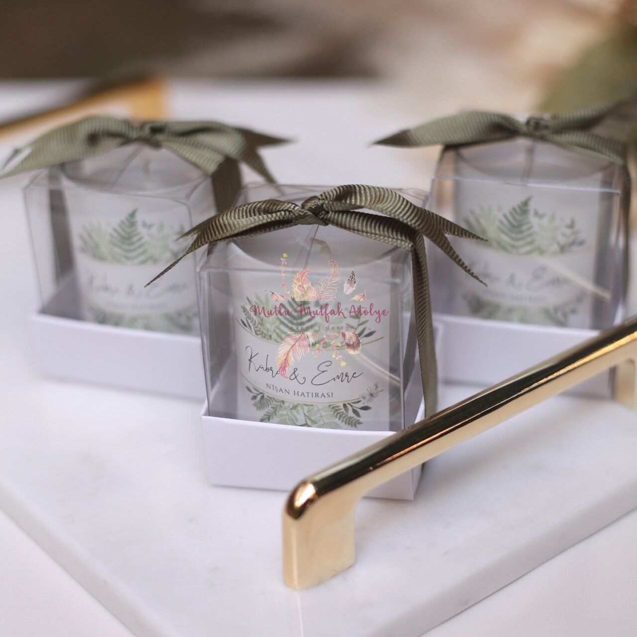 Hediyelik Kokulu Yeşil Çiçekli Mum
