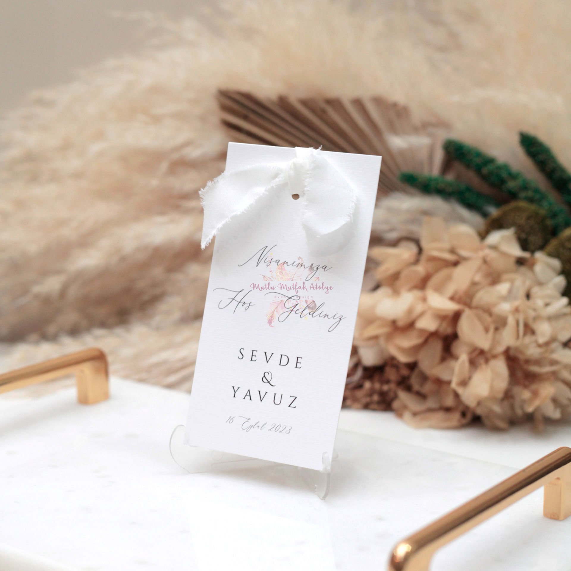 İpek Kurdeleli Hoş Geldin Masa Kartı (7x13)