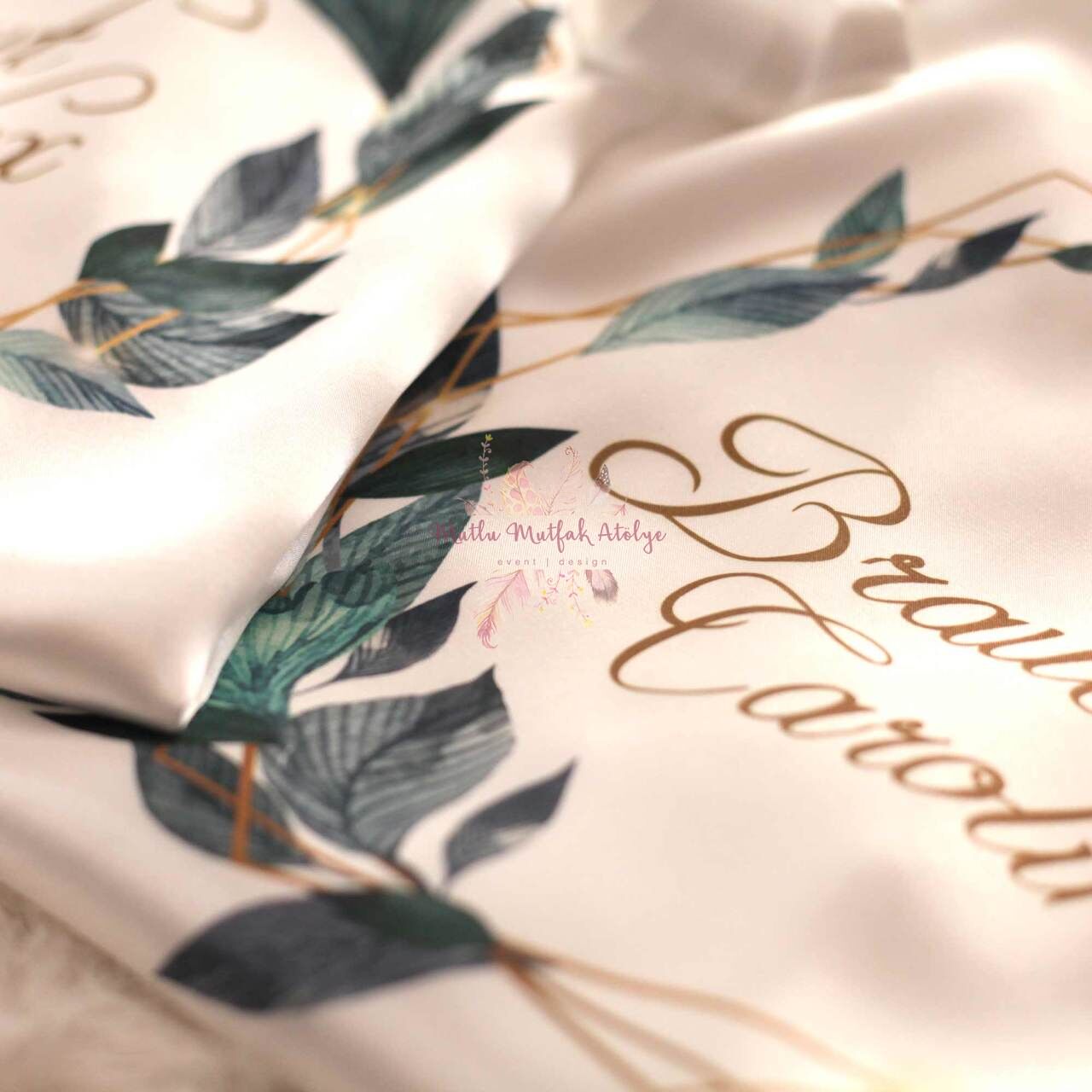 İsimli Baskılı Sabahlık Gold ve Yeşil Çiçekli
