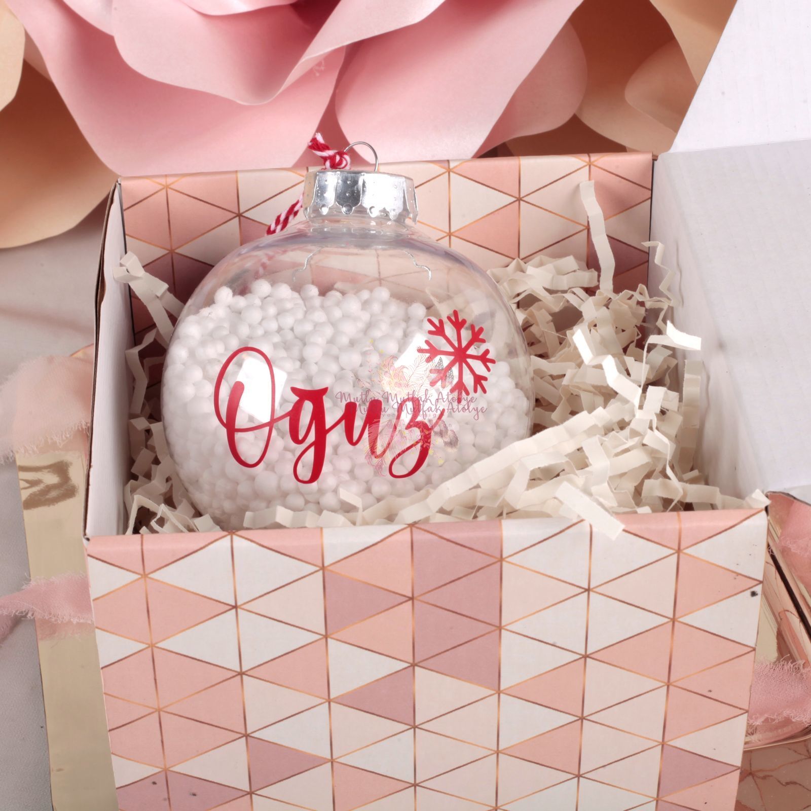 Yılbaşı ruhunu evinize taşıyan bu zarif küre, sevdikleriniz için unutulmaz bir hediye seçeneği sunuyor. İçinde bulunan yapay kar taneleri ve kişiye özel olarak işlenen isimle, her anı daha özel kılacak bir dokunuş sağlar. Yılbaşı ağacınızda parlayan bu küre, hem şıklığı hem de anlamıyla yılbaşı ağaçlarınızın vazgeçilmezi olacak.