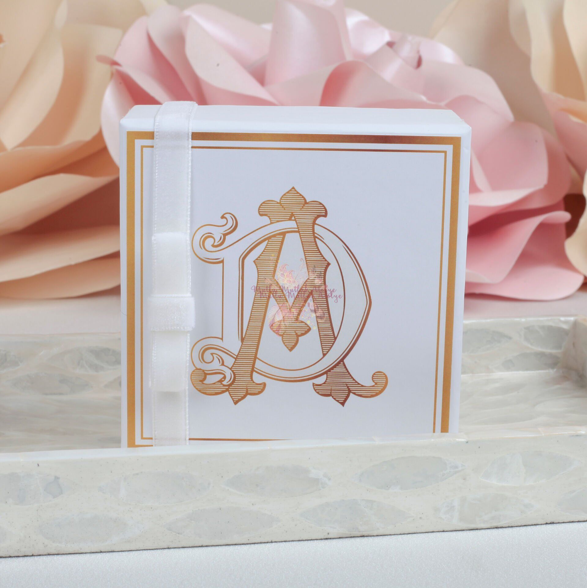 Özel günleriniz için hem şık hem de lezzetli bir hediye seçeneği! 10x10x5 cm ölçülerindeki bu zarif kutu; 4 adet sütlü çikolata ve 6 adet parlak kaplamalı çikolata drajesiyle sunulur. Kutu, dört ayrı bölmeye sahiptir ve üzerinde yer alan özel harf baskısı ve beyaz kadife kurdele ile süslenmiştir.