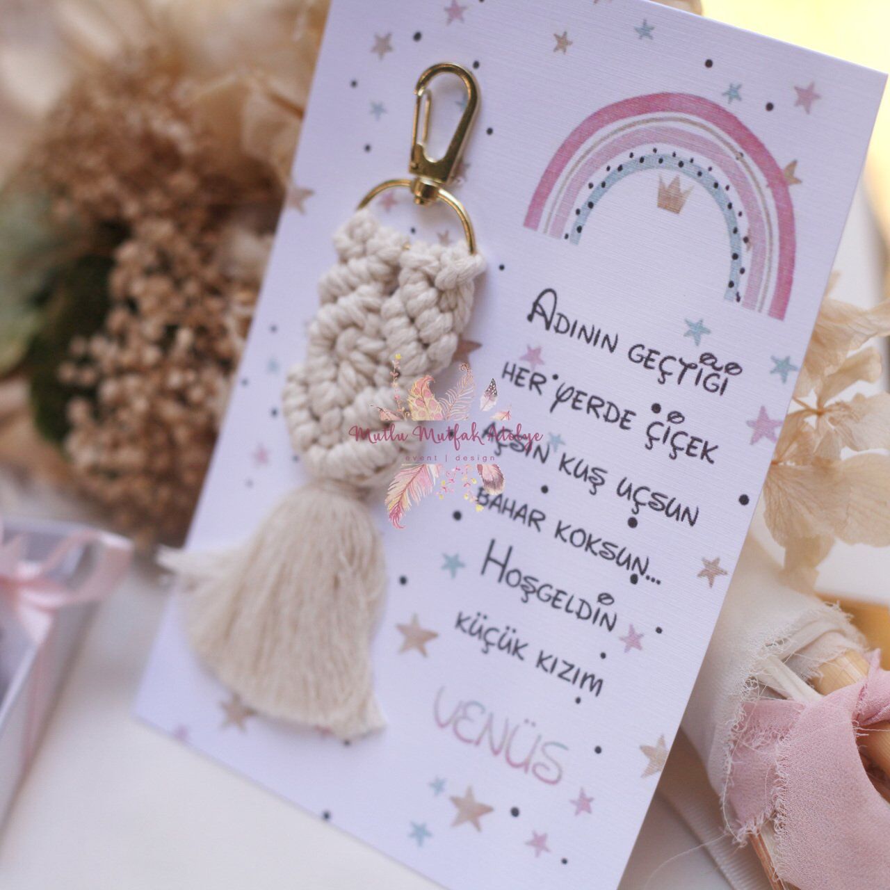 Kişiye Özel Kartlı Makrome Anahtarlık