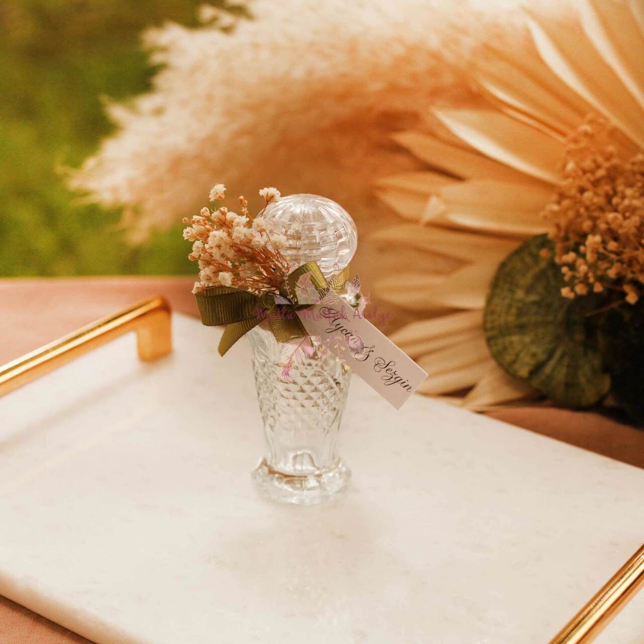 Kesme Cam Şişe Çiçek Süslemeli Hediyelik Kolonya