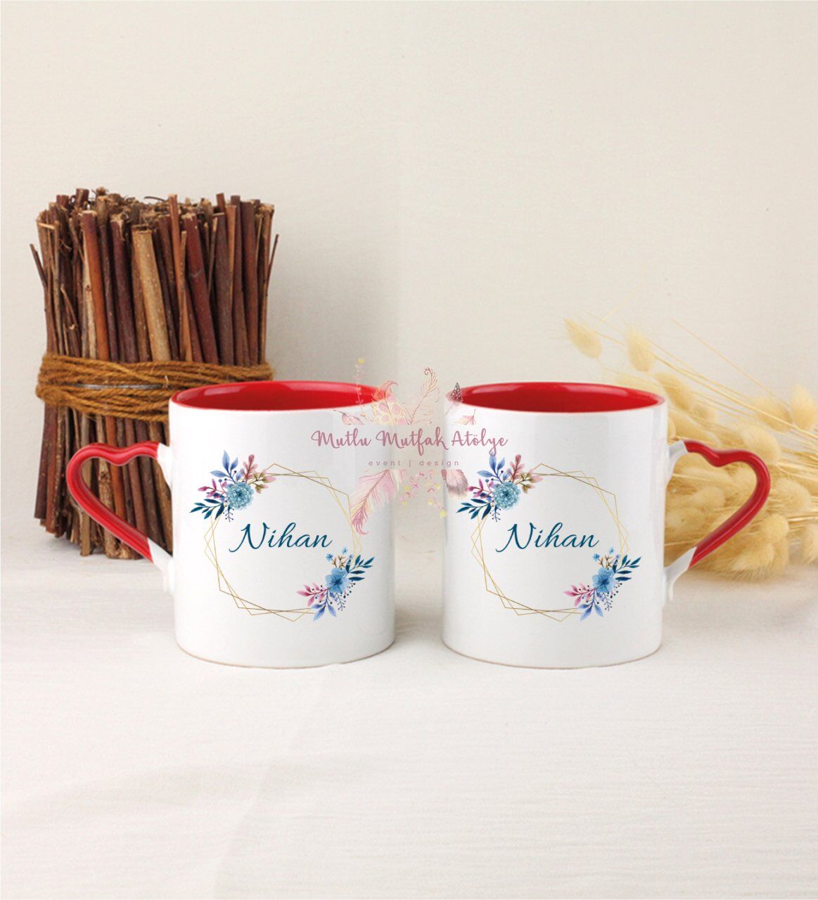• 2’li Kişiye Özel Tasarım Kırmızı Kalpli Kupa Bardak