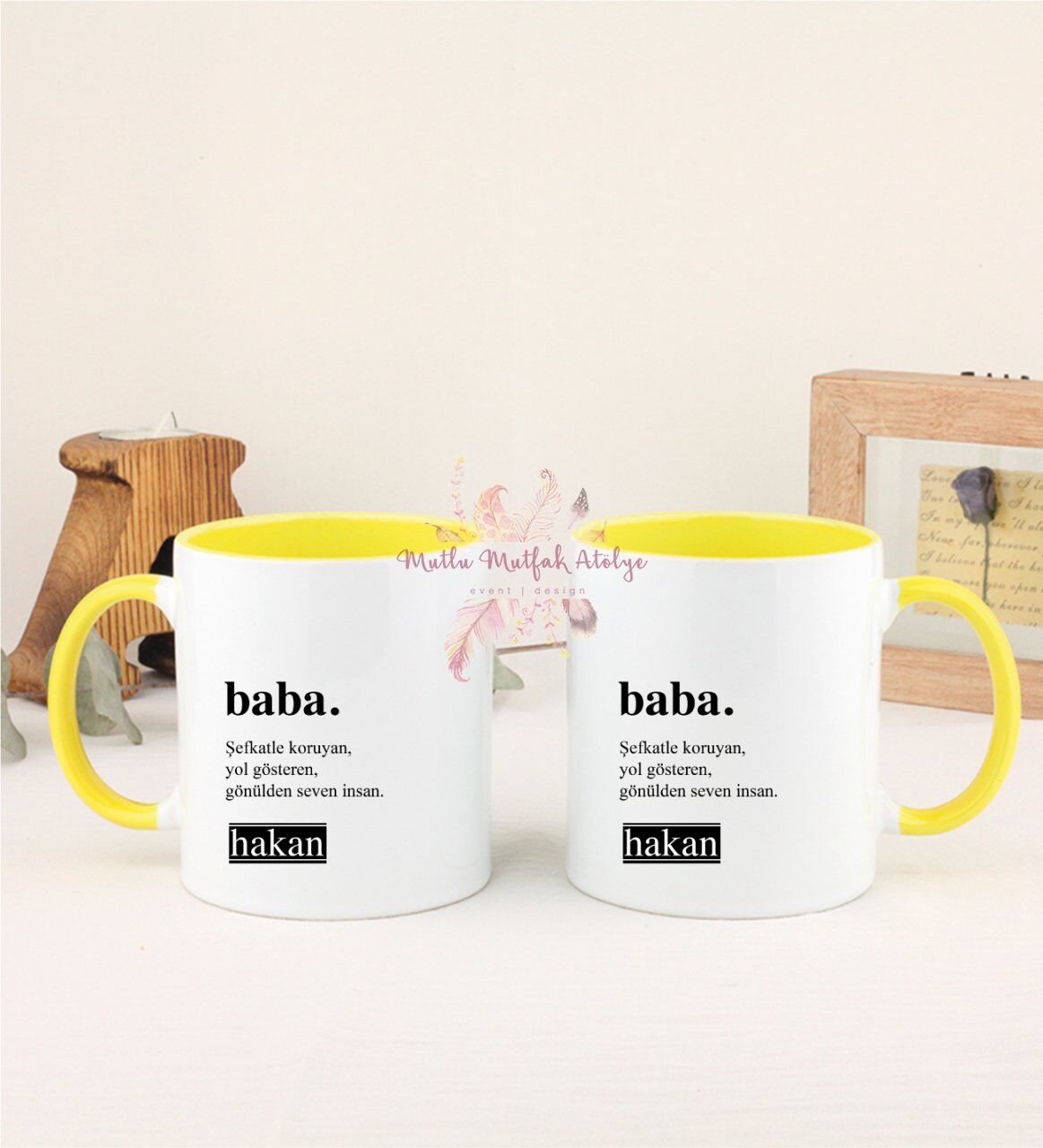 Kişiye Özel Babalar Günü İkili Sarı Kupa Bardak