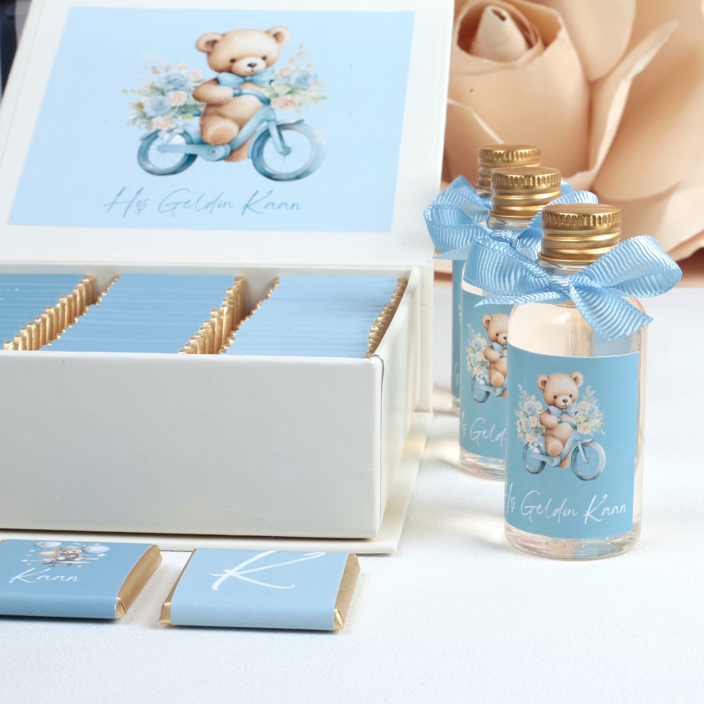 Kişiye Özel Erkek Bebek Çikolatası ve Kolonya Seti (30 Adet), Valonia Sütlü Çikolata 50 Adet)