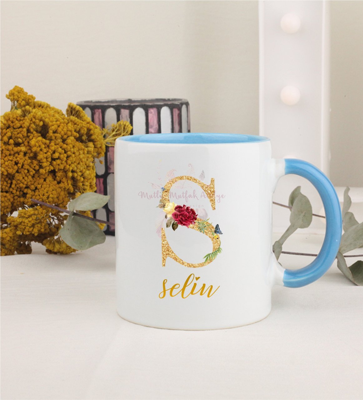 Kişiye Özel Gold Harfli ve İsimli Mavi Kupa Bardak