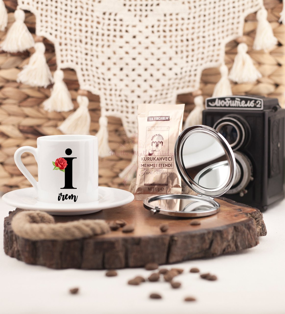 • Kişiye Özel Tasarım Türk Kahvesi Fincanı ve Ayna