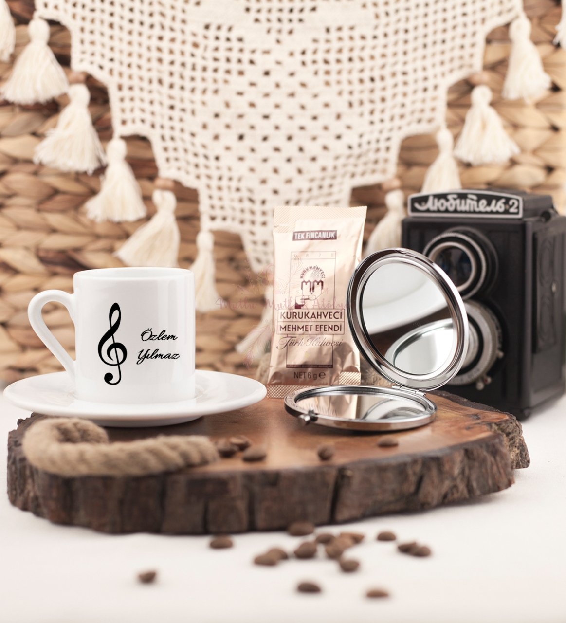 Kişiye Özel Türk Kahvesi Fincanı ve Aynalı Set Müzik Öğretmeni