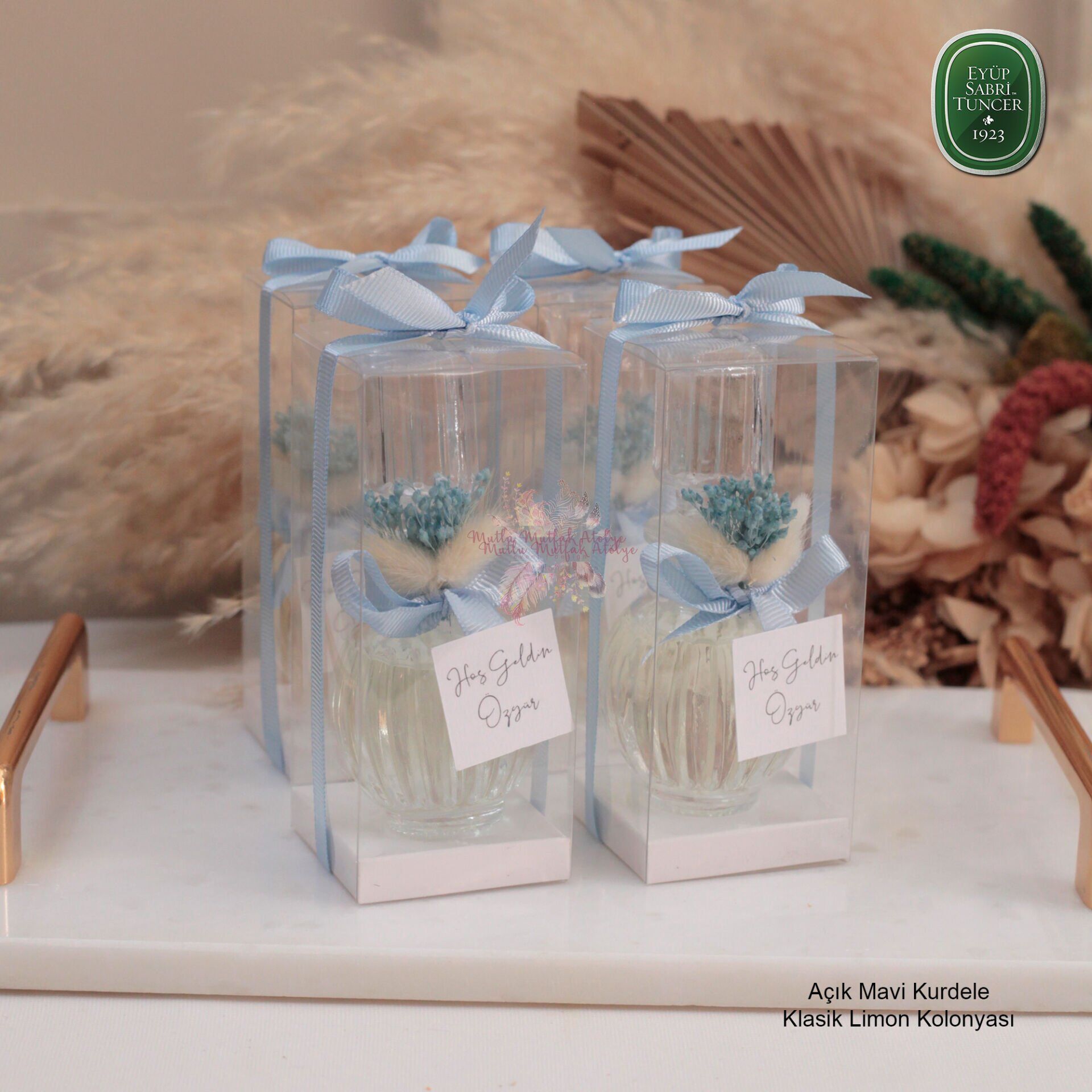 Eyüp Sabri Tuncer markasının kolonyaları, özenle seçilmiş doğal bileşenlerle ve kalite standartlarına uygun şekilde üretilir. Her biri özgün kokularıyla farklı deneyimler sunar ve nişan veya düğün gibi özel günlerde misafirlerinize güzel bir hatıra olarak sunulabilir.