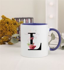 L Harfi Çiçek Desenli Lacivert Kupa Bardak