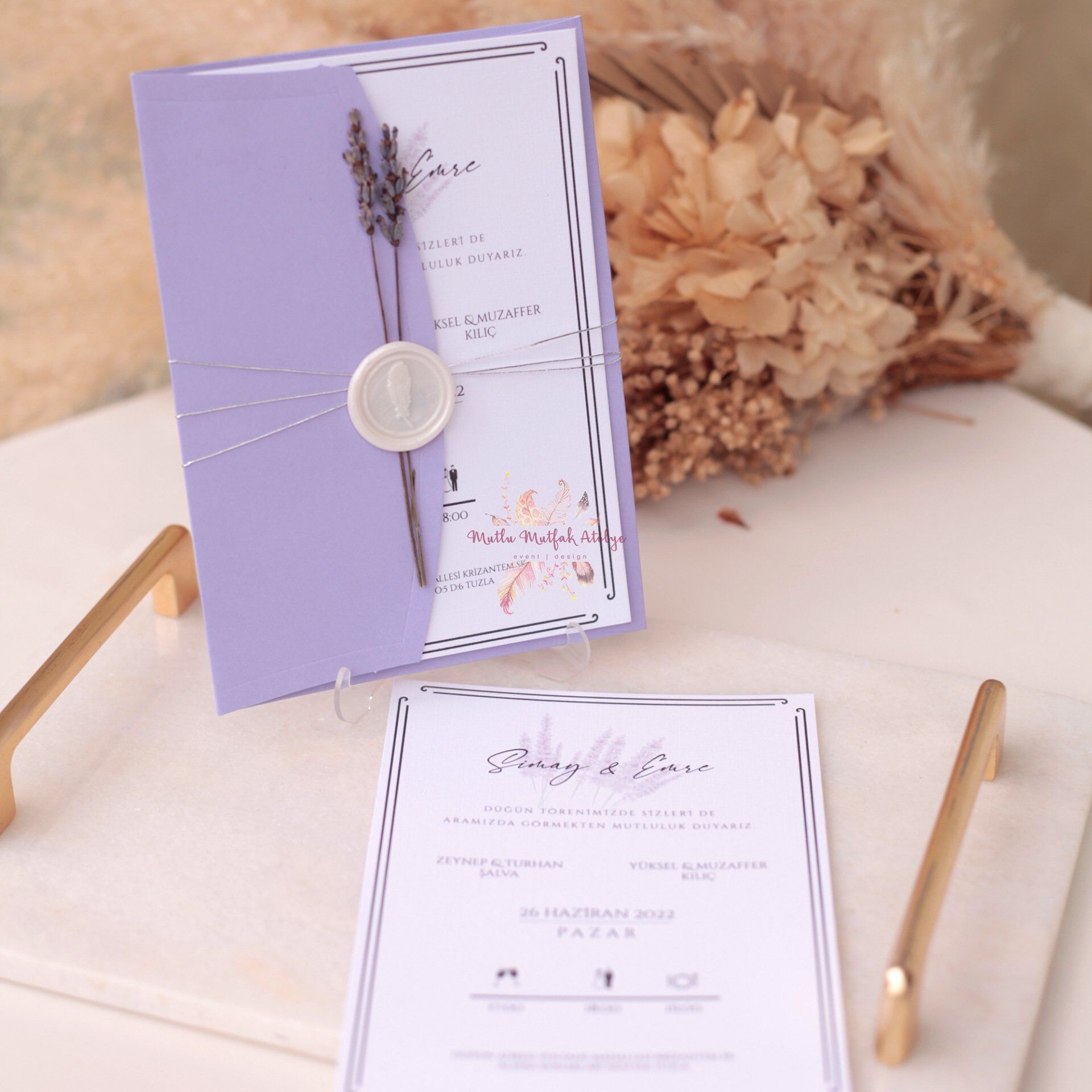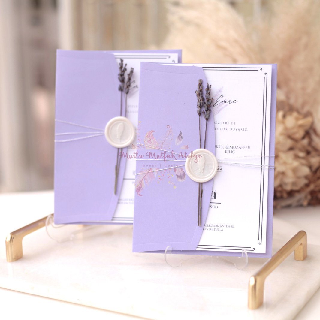 Lavanta Süslemeli Mühürlü Davetiye (50 Ad.)