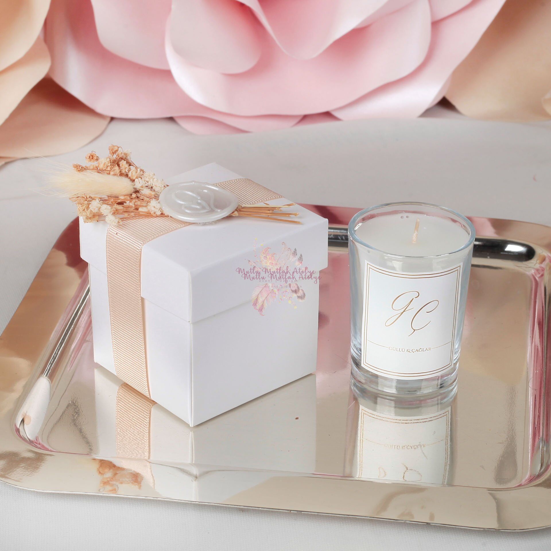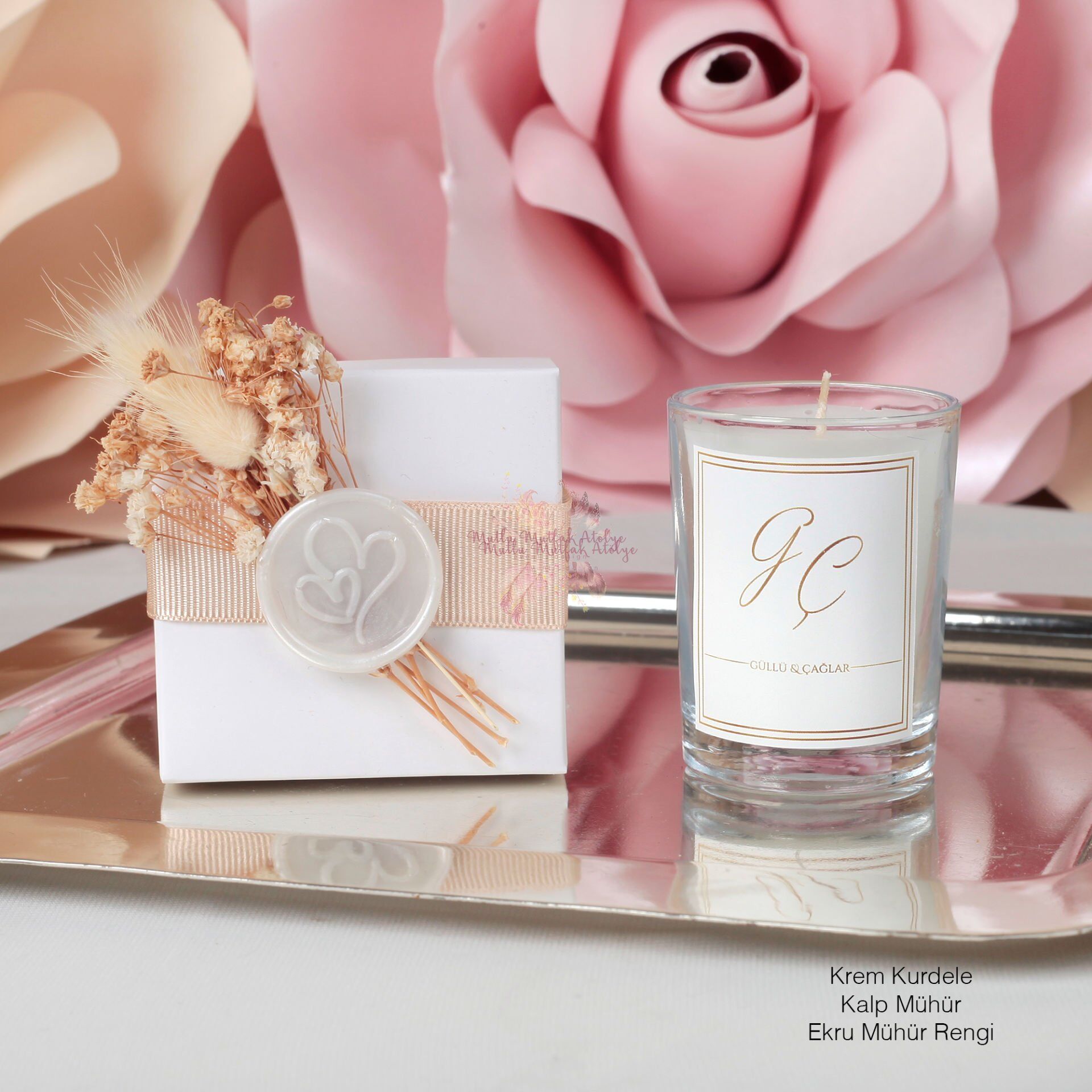 Nişan Hediyeliği Mum Vanilya Kokulu Mühürlü Çiçekli