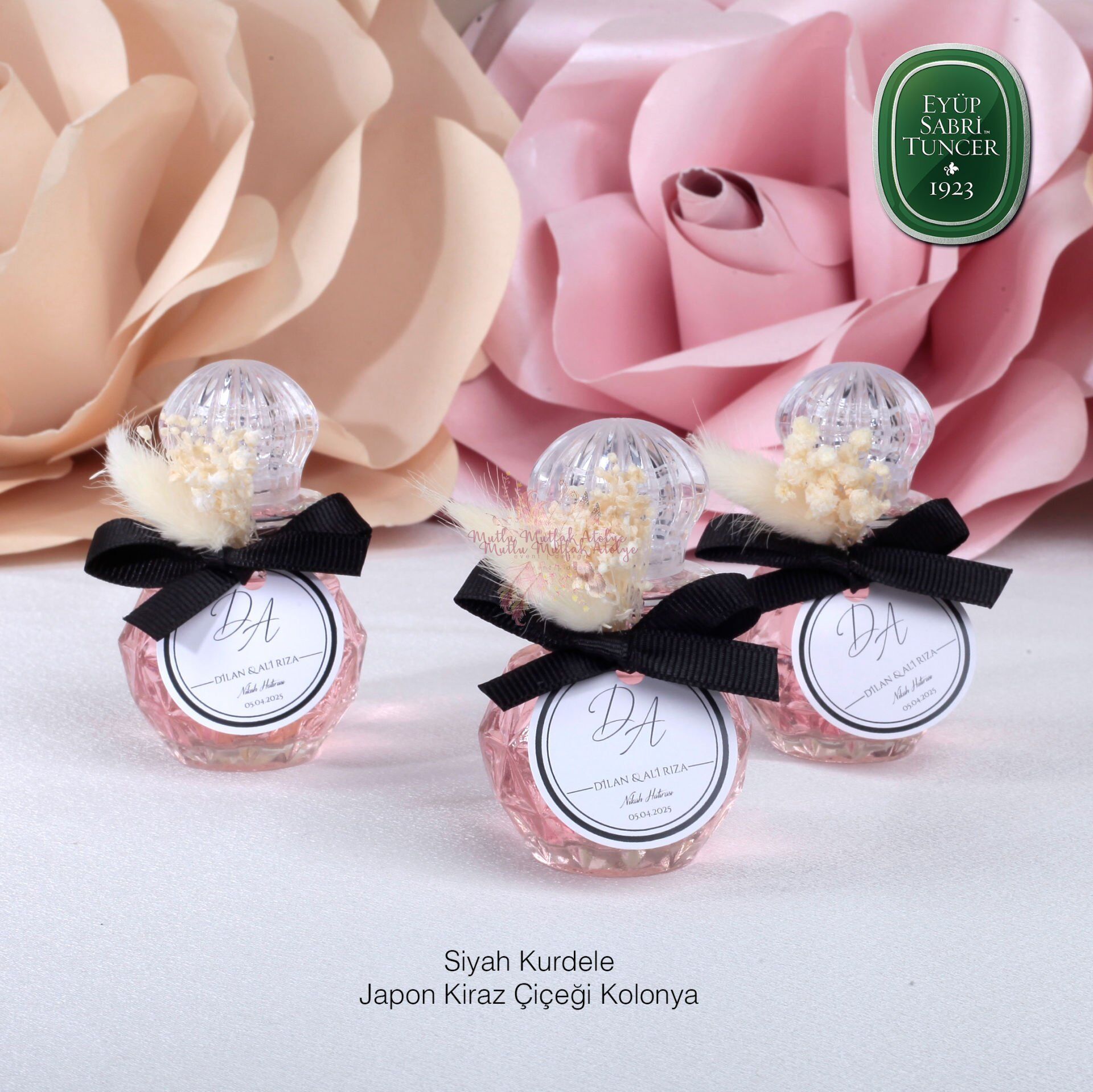 Özel günlerinize zarafet katacak hediyelik cam şişe kolonya, söz, nişan, düğün ve diğer etkinlikler için ideal bir hatıra olarak tasarlandı. Eyüp Sabri Tuncer kolonya kullanılarak hazırlanan bu şık kolonya, misafirlerinize hem hoş bir koku hem de anlamlı bir hatıra sunar.