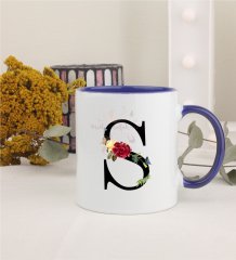 S Harfi Çiçek Desenli Lacivert Kupa Bardak
