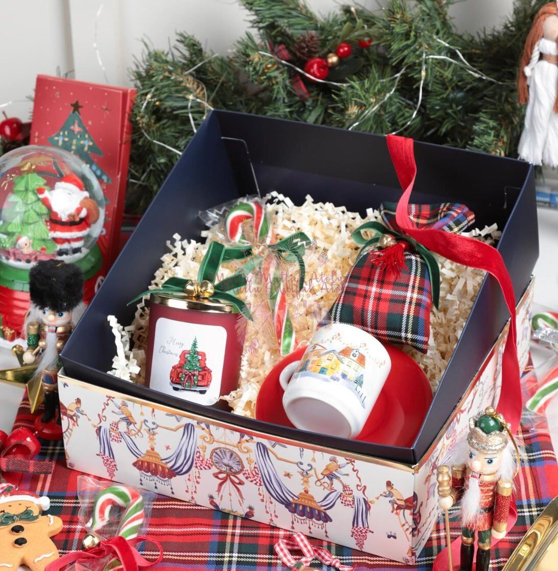 Yılbaşı temalı hediye kutu ile gönderilmektedir. Kurabiyenin mest eden kokusu ile taçlandırılan mumlarımızı sizlerin kullanımına sunuyoruz.