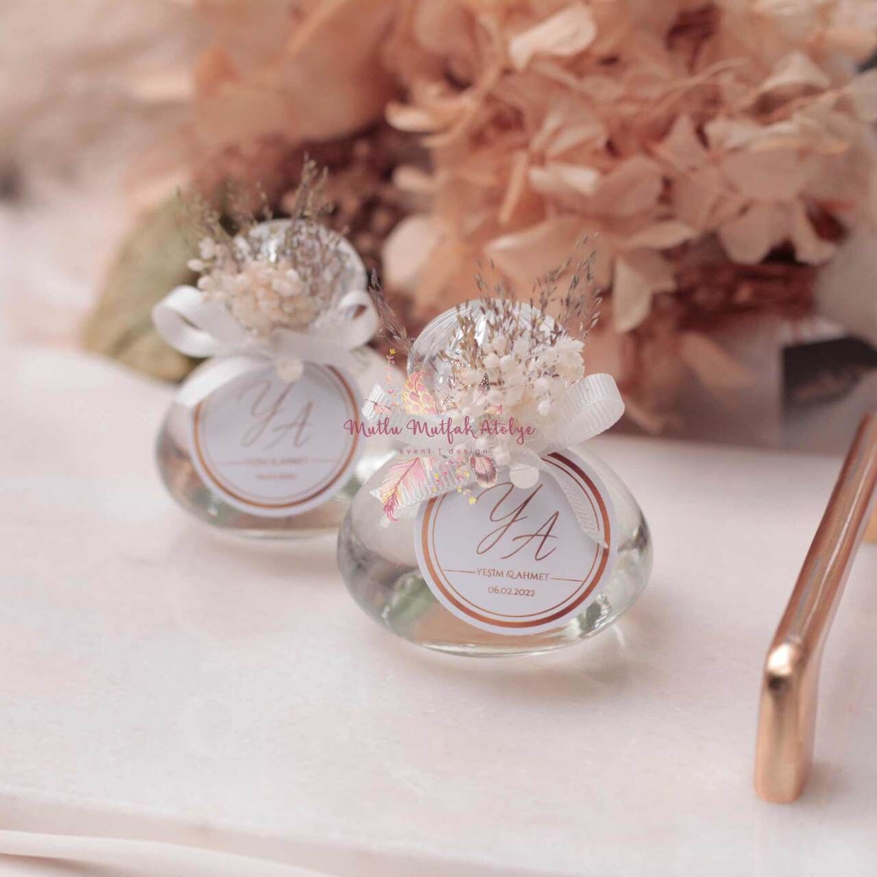 Yuvarlak Cam Şişe Çiçek Süslemeli Hediyelik Kolonya 50ml Limon Kolonyası Söz Nişan Düğün Hediyeliği Ürünlerimizde Eyüp Sabri Tuncer markasının kolonyaları kullanılmaktadır. Klasik Limon Kolonyası, Amber Kokulu Kolonya, Ayvalık Zeytin Çiçeği Kolonyası, Japon Kiraz Çiçeği Kolonyası, Lavanta kolonyası, Bodrum Mandalinası Kolonyası Düğünler, nişanlar, kına geceleri, baby shower partileri, bride partileri, kız ve erkek çocuk doğum günleri ve kurumsal firma etkinlikleri gibi özel günler, sevdiklerimizle bir araya gelerek keyifli anılar biriktirdiğimiz zamanlardır. Bu tür etkinliklerde seçtiğimiz hediyeler, anlamını ve özenimizi ifade ederken aynı zamanda unutulmaz bir iz bırakmayı hedefler. Mutlu Mutfak Atölye LKLN011 Yuvarlak Cam Şişe Çiçek Süslemeli Hediyelik Kolonya