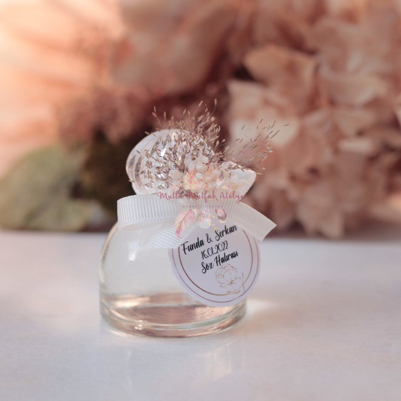 Yuvarlak Cam Şişe Çiçek Süslemeli Eyüp Sabri Tuncer Hediyelik Kolonya 40ml Limon Kolonyası Söz Nişan Düğün Hediyeliği Ürünlerimizde Eyüp Sabri Tuncer markasının kolonyaları kullanılmaktadır. Klasik Limon Kolonyası, Amber Kokulu Kolonya, Ayvalık Zeytin Çiçeği Kolonyası, Japon Kiraz Çiçeği Kolonyası, Lavanta kolonyası, Bodrum Mandalinası Kolonyası Düğünler, nişanlar, kına geceleri, baby shower partileri, bride partileri, kız ve erkek çocuk doğum günleri ve kurumsal firma etkinlikleri gibi özel günler, sevdiklerimizle bir araya gelerek keyifli anılar biriktirdiğimiz zamanlardır. Bu tür etkinliklerde seçtiğimiz hediyeler, anlamını ve özenimizi ifade ederken aynı zamanda unutulmaz bir iz bırakmayı hedefler. Mutlu Mutfak Atölye KKLN004 Yuvarlak Cam Şişe Çiçek Süslemeli Eyüp Sabri Tuncer Hediyelik Kolonya